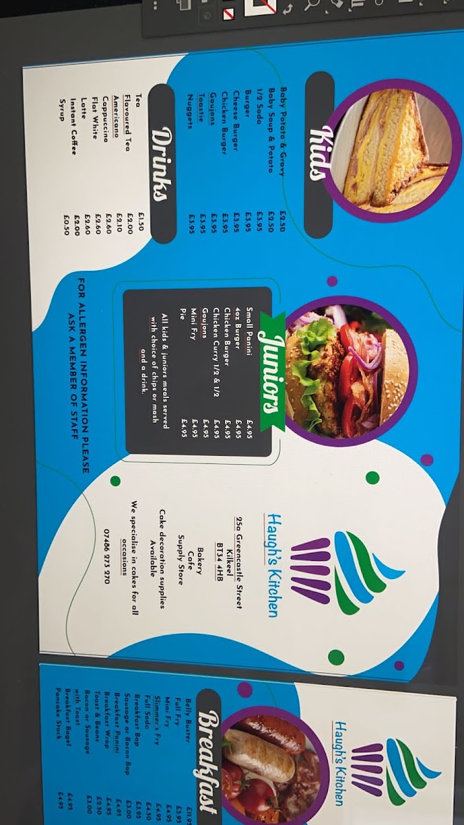 Kids’ Meals offer smaller portion dishes including baby potato and gravy, baby soup and potato, half soda, various burgers, goujons, toasties, and nuggets, catering to younger visitors.