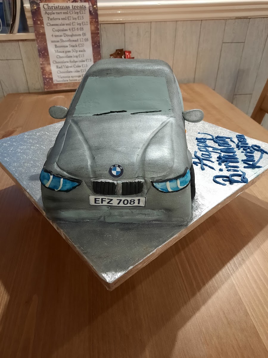 For desserts and treats, the menu features a selection of cakes such as birthday and wedding cakes, gelato, cupcakes, and ice cream options including gelato and iced coffee, serving as options for coffee breaks or dessert.